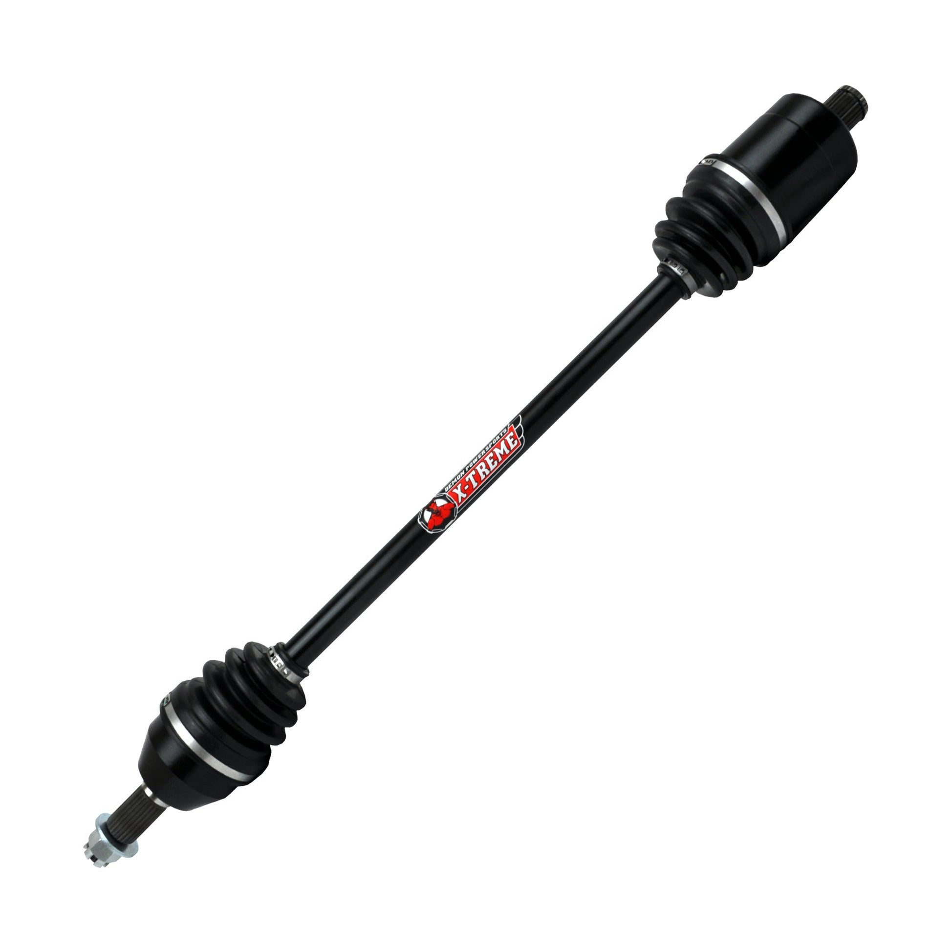 These axles are bigger, beefier, and stronger. Demon X-Treme Heavy Duty Axles are built using larger CV joints and shafts, paired with our proprietary dual heat treatment process, and 4340 Chromoly Steel material for all its components including the shaft, housing, cage, race, and balls.